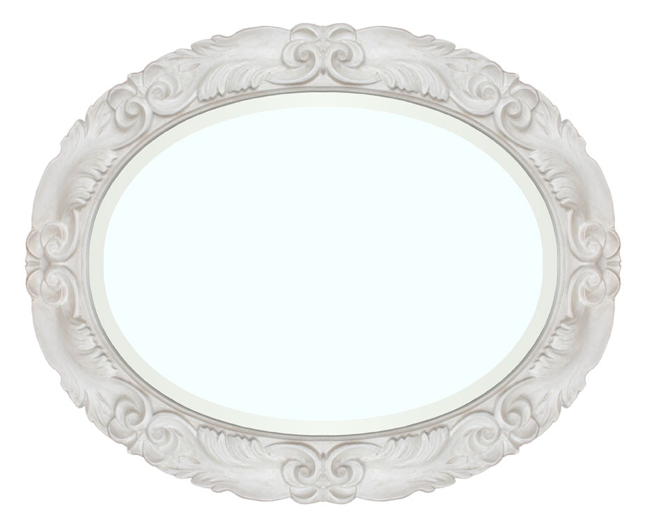 Miroir ovale blanc, délicieux et raffiné avec glace biseautée, réalisé en pâte de bois.
