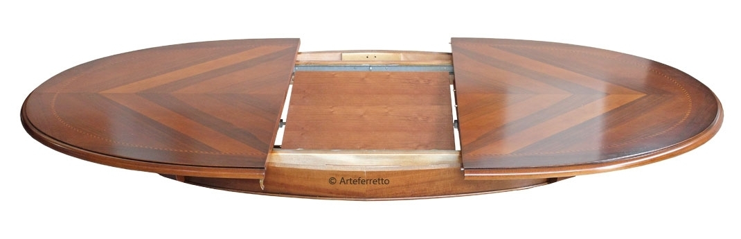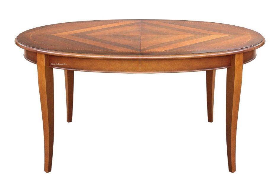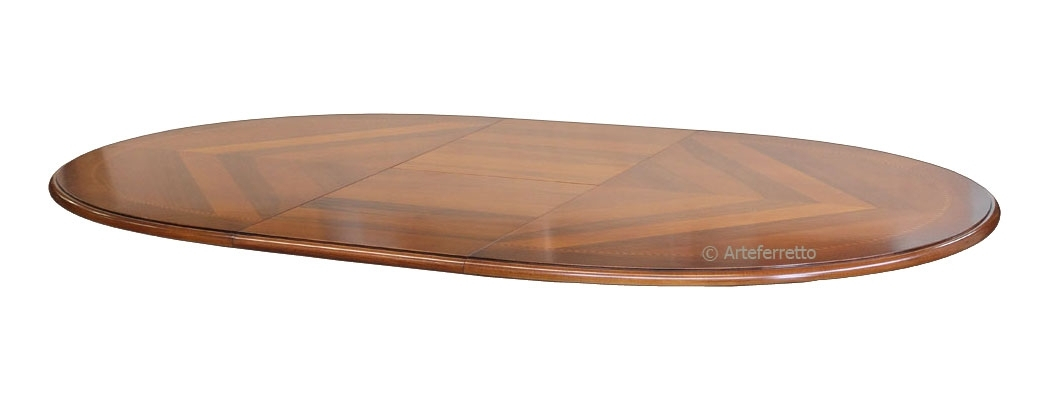 Table ovale 170 cm prolonegable en finition classique soutenu par 4 pieds robustes et doucement modelés.Les lignes ondulées, élégantes et agréables, sont reproduites aussi sur la partie inférieure du plateau.Le dessus est caractérisé par un élégant motif floral marqueté.L'effet patiné du bois donne profondeur et exalte le travail du bois. En plus, les détails sculptés et le bord qui délimite le plateau , sont mis en relief par une finition en feuille d'or très lumineuse.Une table belle et extrêmement fonctionnelle : le plateau fermé fait 170 cm mais, grâce au simple mécanisme d'extension, il est possible d'atteindre une largeur de 270 cm.Les finitions soignées confèrent à cette magnifique table un style classique et prestigieux qui ne passe pas inaperçu. Situé dans une position centrale, elle deviendra le noyeau de la pièce.Dimensions :largeur 170+100 cmprofondeur 110 cmhauteur 79 cm