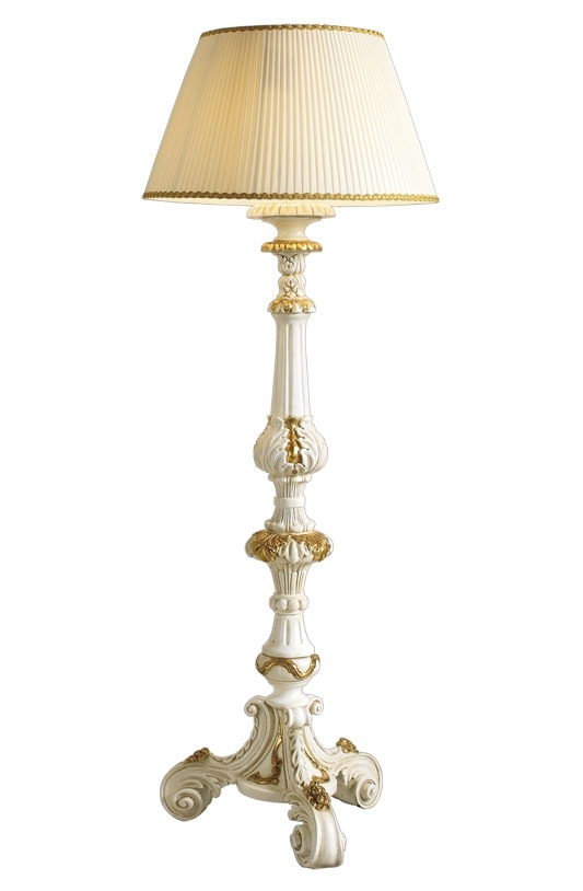 Les deux colonnes porte lampe latérales sont un exemple de l'excellence de l'artisanat italien: une fusion de soigneux détails sculptés avec un vernissage vieilli et finitions en feuille d'or.