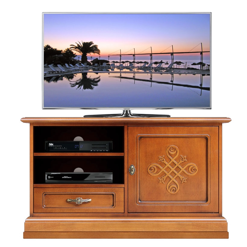 Meuble TV élégant qui, come tous les produits de la Collection YOU, se caractérise par un style contemporain tout en gardant les qualités du meuble artisanal classique.