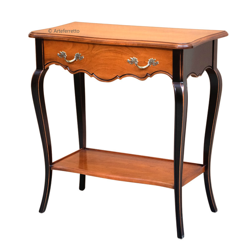 Ensemble d'entrée très raffiné et fini entièrement à la feuille d'argent brillante appliquée manuellement de façon artisanale.L'élégance donnée par la finition tout à fait splendide est parfaite en association aux formes de style doux et discret.Grâce à ces caractéristiques, cet ensemble, console et miroir, est particulièrement indiqué pour tout contexte d'ameublement, et donne une touche de classe exclusif.Dimensions console:Largeur 93 cm;Profondeur 38 cm;Hauteur 80 cm.Dimensions miroir:Extérieures: L 71 x H 91 x P 4 cm(Intérieures de la glace L49,5 x H69 cm)
