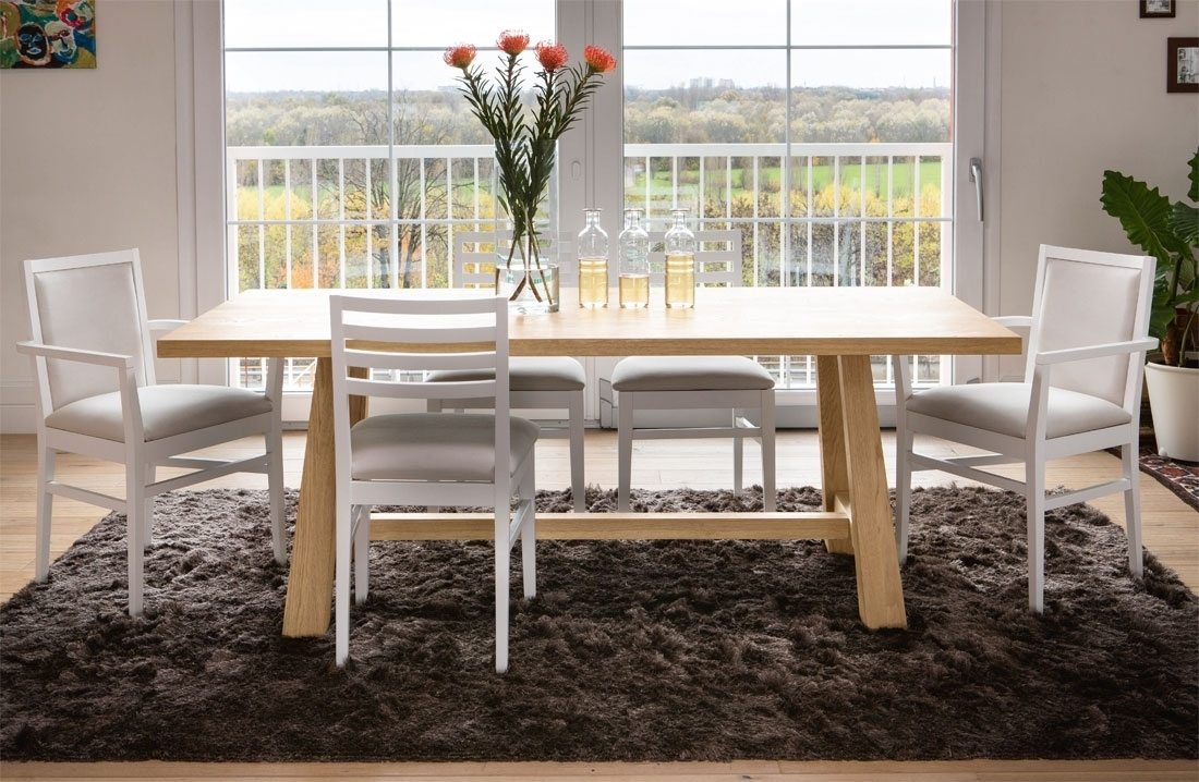 Table design fixe en chêne massif, aux lignes épurées, simples et de grand impact esthétique.