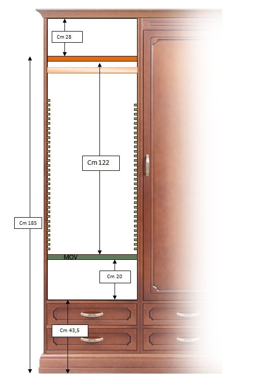 DOTATION STANDARD : 2 penderies + 2 tablettes fixes + 2 tablettes réglables