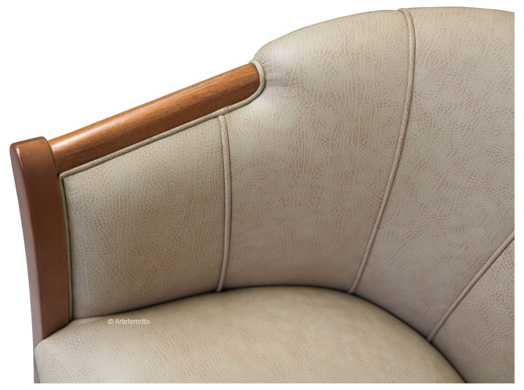 Cette variante, par rapport au modèle "voltaire" standard, présente une assise encore plus confortable et haute (hauteur 52 cm) et les accoudoirs dans les deux cotés latérales sont totalement rembourrés.
