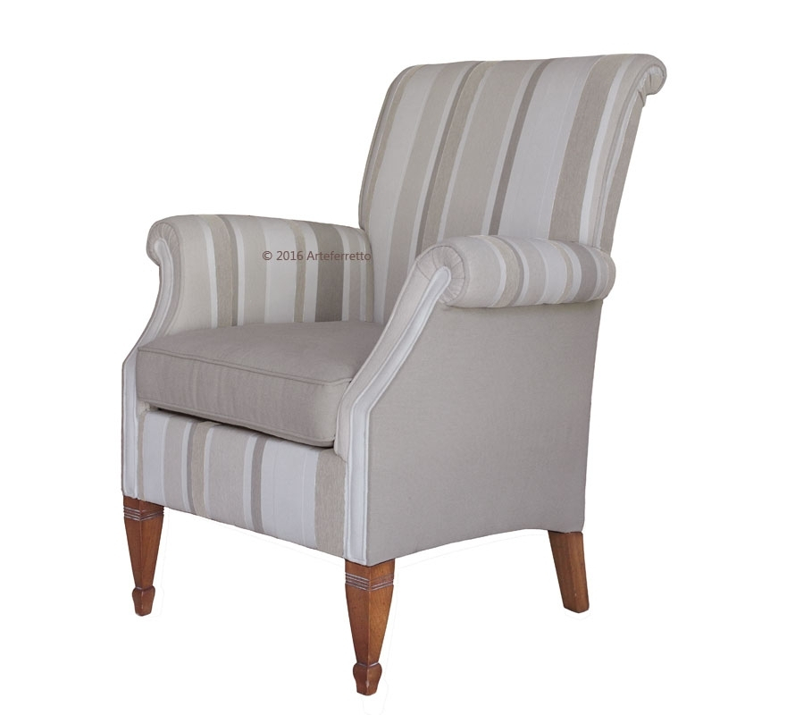 Confortable fauteuil rembourré classique. L'armature est en bois solide de hêtre alors que le rembourrage élaboré crée un objet très confortable sans renoncer au style et à l'élégance.