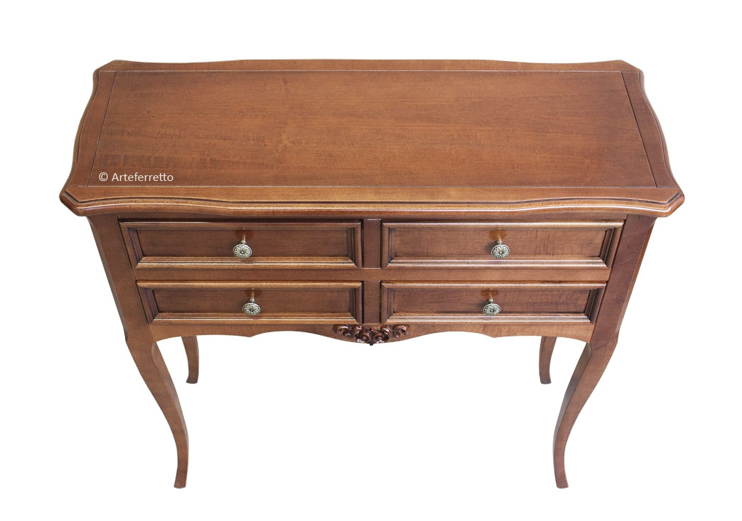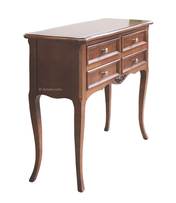 Ensemble d'entrée très raffiné et fini entièrement à la feuille d'argent brillante appliquée manuellement de façon artisanale.L'élégance donnée par la finition tout à fait splendide est parfaite en association aux formes de style doux et discret.Grâce à ces caractéristiques, cet ensemble, console et miroir, est particulièrement indiqué pour tout contexte d'ameublement, et donne une touche de classe exclusif.Dimensions console:Largeur 93 cm;Profondeur 38 cm;Hauteur 80 cm.Dimensions miroir:Extérieures: L 71 x H 91 x P 4 cm(Intérieures de la glace L49,5 x H69 cm)