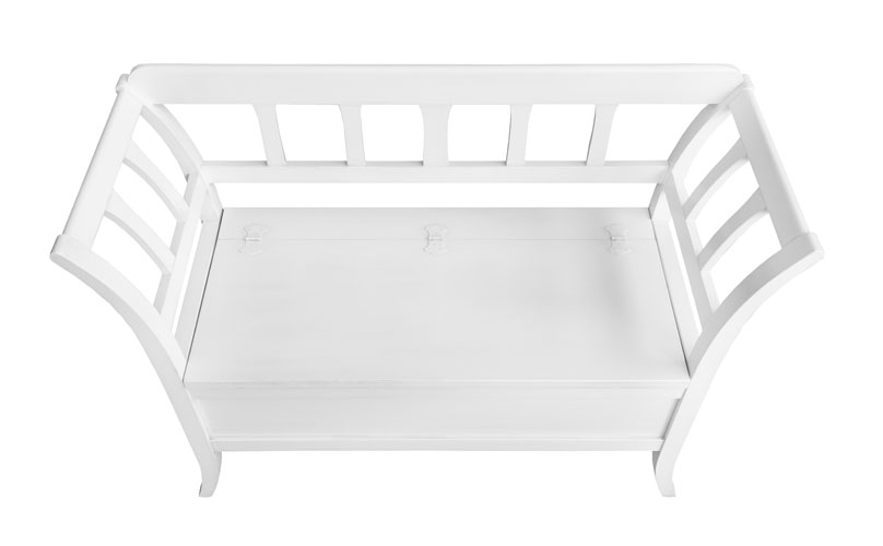 Ce banc d'entrée laqué classique entièrement en bois, qu'on peut placer dans toute pièce de la maison, dispose d'une confortable ouverture à abattant pour le rangement de nombreux objets.