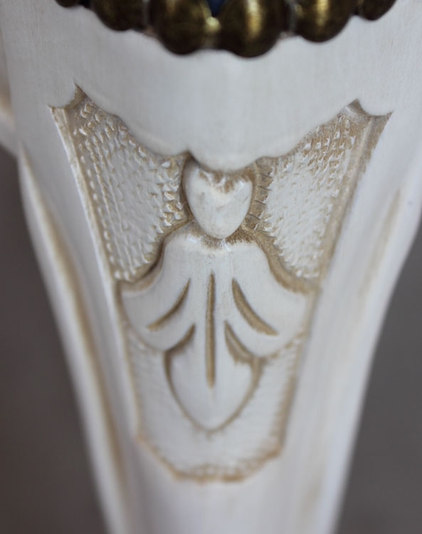 La touche de style est donnée par le motif décoratif de la structure en bois, avec des gravures florales délicates, mis en relief par un vernissage très soigné.