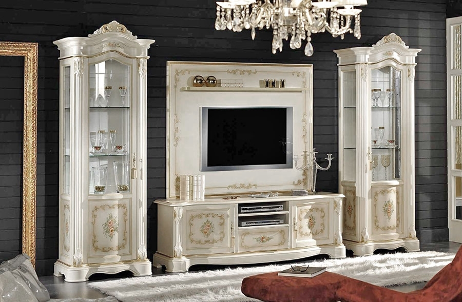 Le meuble accueille discrètement deux niches spacieuses pour le placement de tout appareil électronique: en plus, il offre non seulement la possibilité d'y appuyer le téléviseur, mais aussi la possibilité de l'accrocher à un panneaux faisant partie de la structure du meuble.