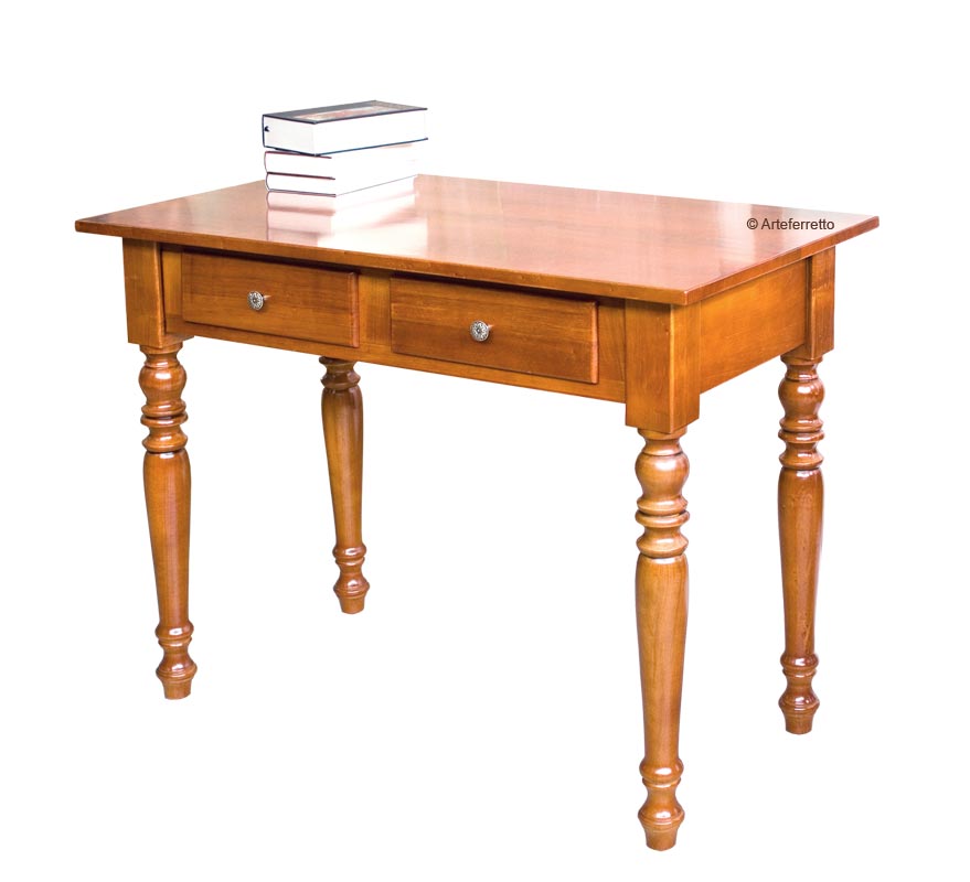 Bureau très solide, en bois massif de hêtre et peuplier, aux lignes classiques mais simples.