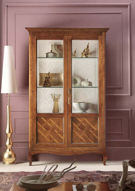 Vitrine 2 portes marquetée