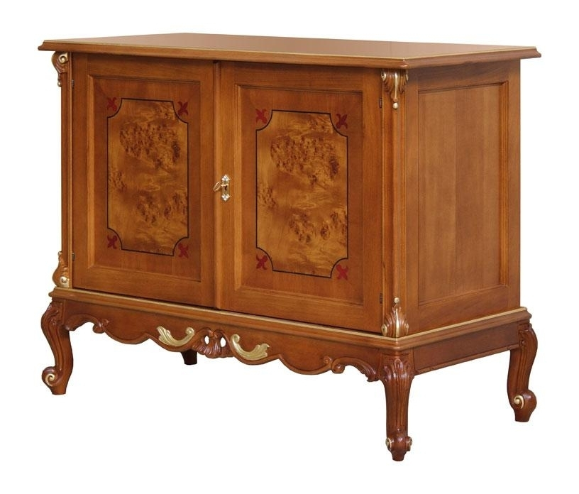 Buffet modelé classique très raffiné. Son point de force est surtout le pied splendide sculpté, valorisé par des précieux détails en feuille d'or.