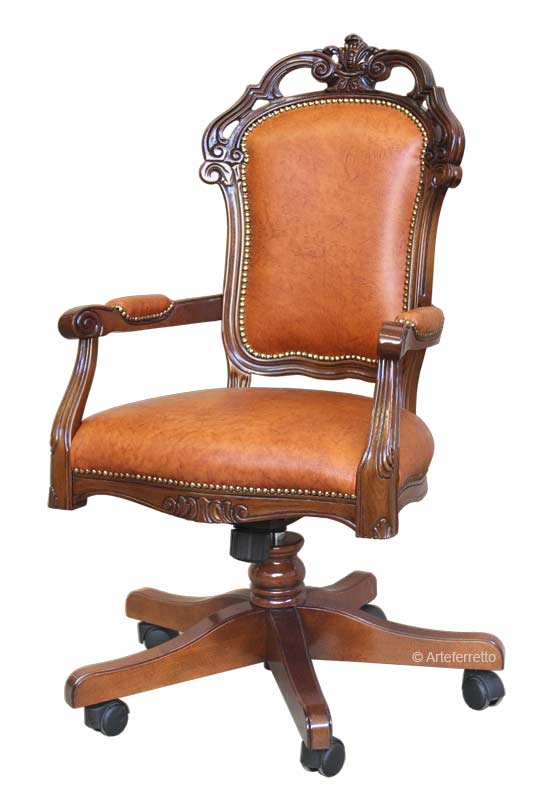 Très vaste résulte aussi le choix des finitions pour la structure de ce fauteuil de bureau: du coloris noyer présenté en photo au Bassano en passant pour une finition qui, sur demande, peut être enrichie avec détails en feuille d'or ou d'argent.