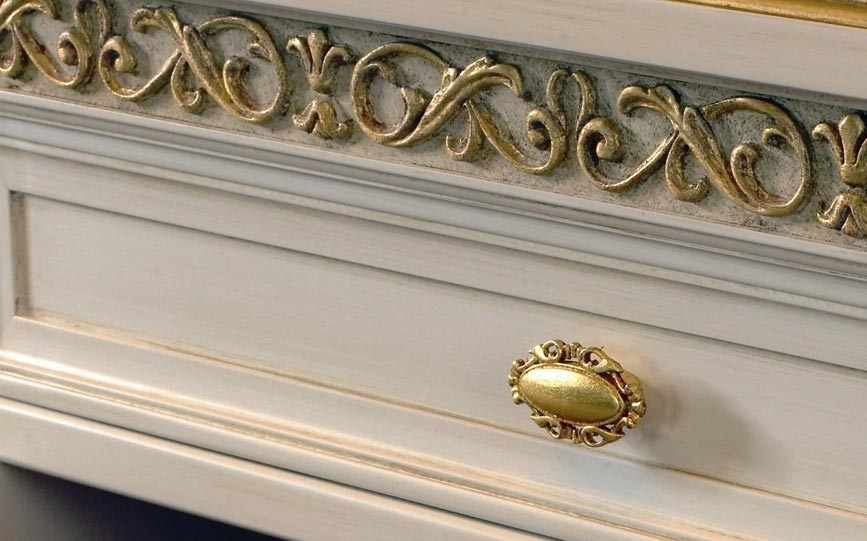 Les beaux détails sont mis en relief par l' application de la feuille d'or qui met en relief la grande valeur des gravures. Des poignées exclusives complètent la perfection de cette création.