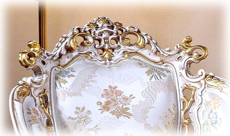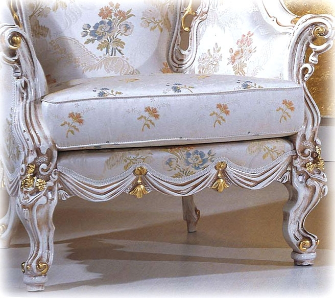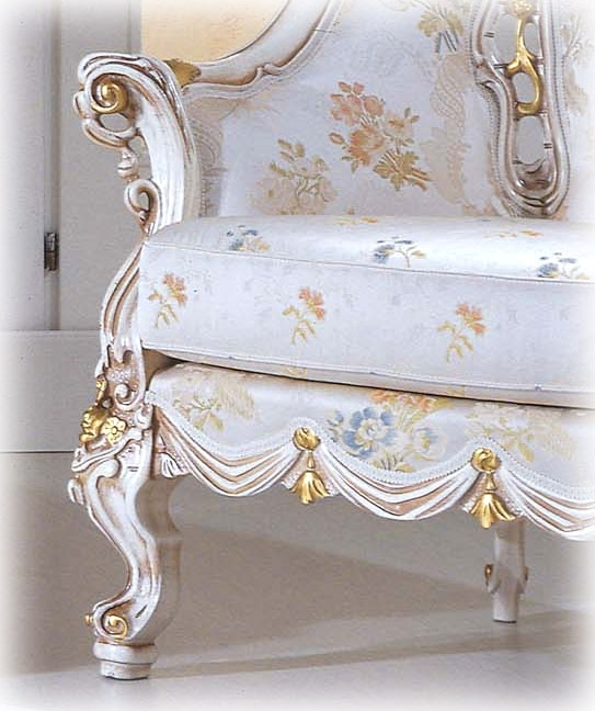 Ce fauteuil est réellement un rêve! Son aspect classique incomparable est mis en relief par des finitions habilement vieillies et par l'application des détails à la feuille d'or précieux et raffinés.