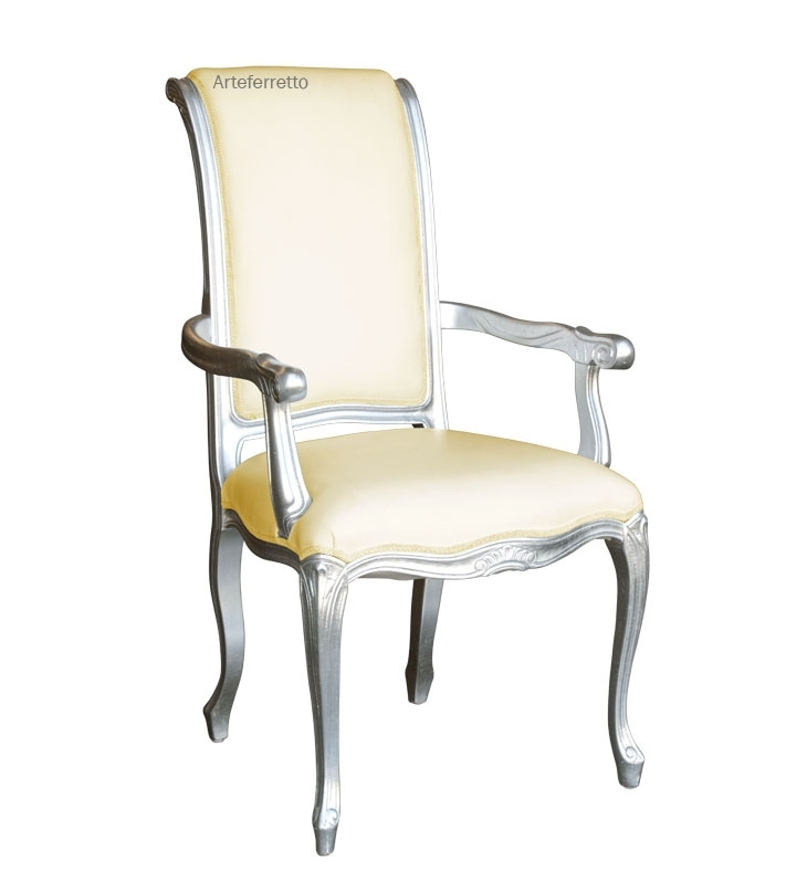 Chaise avec accoudoirs finition argent, style classique et intriguant. Un produit fascinant de fabrication artisanale qui saura enrichir la décoration de votre intérieur avec raffinement et fonctionnalité.
