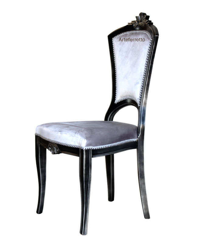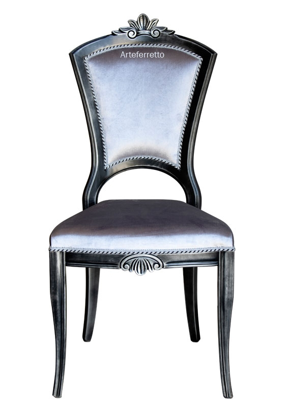 Le dossier suit un agréable courbe en forme d'arc enrichi, dans la partie supérieure, par une sculpture précieuse également reprise dans la partie antérieure.