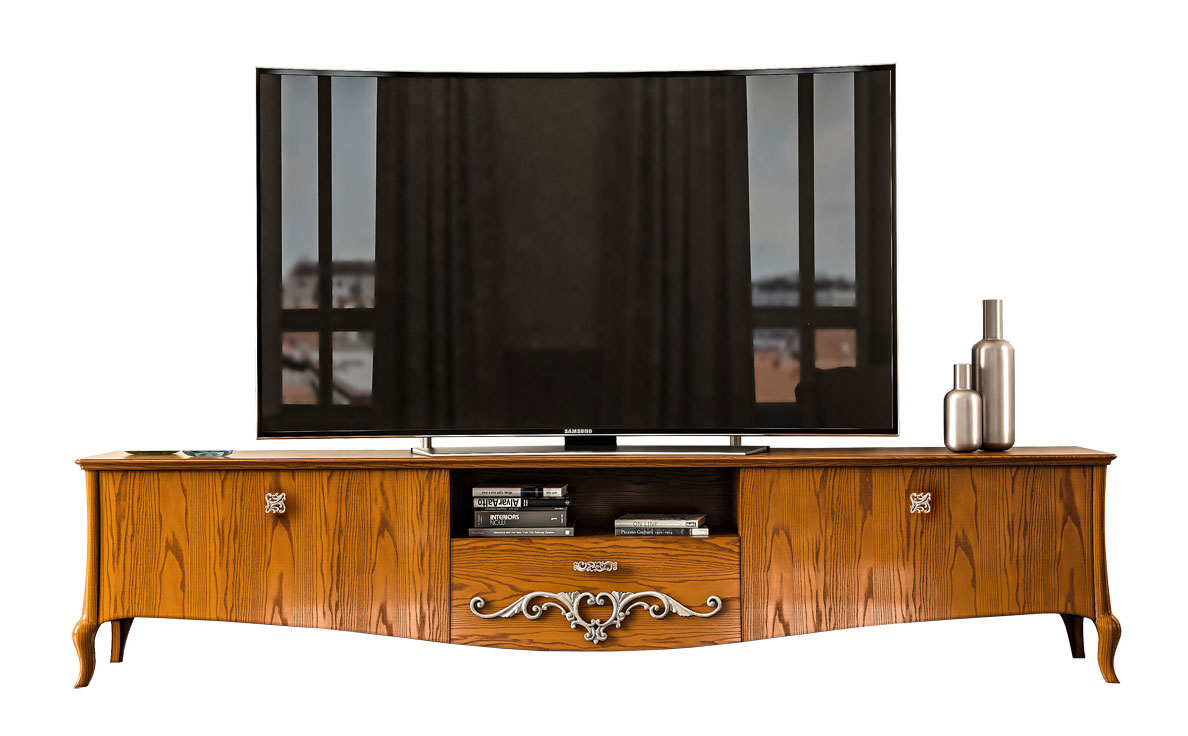 Meuble TV bas avec un style élégant et raffiné. Un produit artisanal de haute qualité qui transmet toute l'essence du vrai bois.