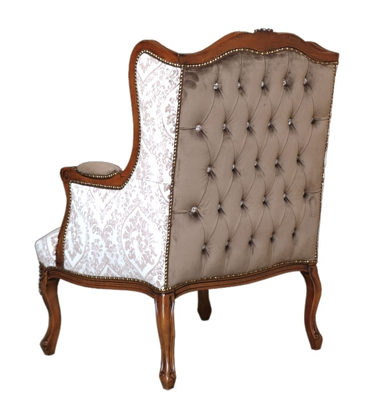 Le tissu présente un motif à effet usagé obtenu grâce à une décoloration recherchée de la trame. Les côtés pleins sont revêtus avec du velours caractérisé par une douceur incroyable. On trouve le même velours à l'arrière où ce fauteuil présente un motif capitonné raffiné tellement à susciter admiration et étonnement en regardant seulement l'arrière: celui-ci c'est inhabituel mais témoigne la qualité totale de ce produit.