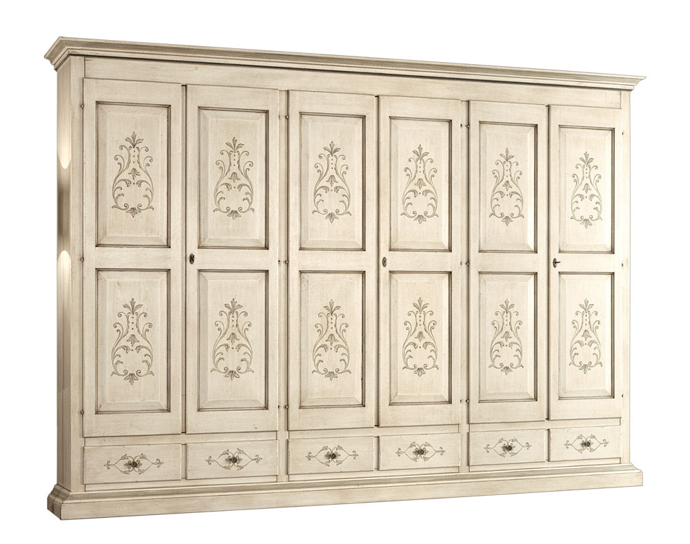 La structure se compose par 8 tiroirs très spacieux tandis que l'espace dans chaque porte est optimisé par une étagère fixe dans la partie supérieure, une penderie et une deuxième étagère réglable en hauteur. En tout, vous disposez donc de 4 étagères réglables et 4 penderies.