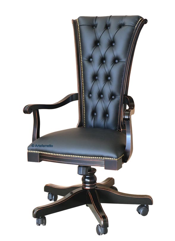 Fauteuil tournant et réglable en hauteur aux lignes élégantes. Confortable et fonctionnel, ce fauteuil trouve sa place idéale dans un bureau ou cabinet de style classique ou contemporain.