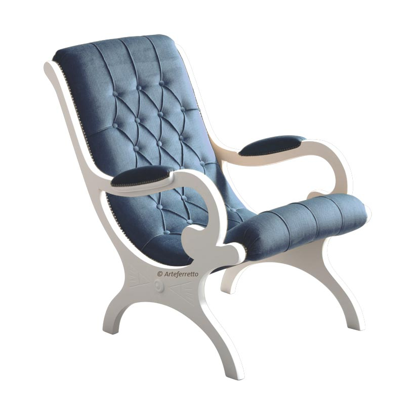 Cette variante, par rapport au modèle "voltaire" standard, présente une assise encore plus confortable et haute (hauteur 52 cm) et les accoudoirs dans les deux cotés latérales sont totalement rembourrés.