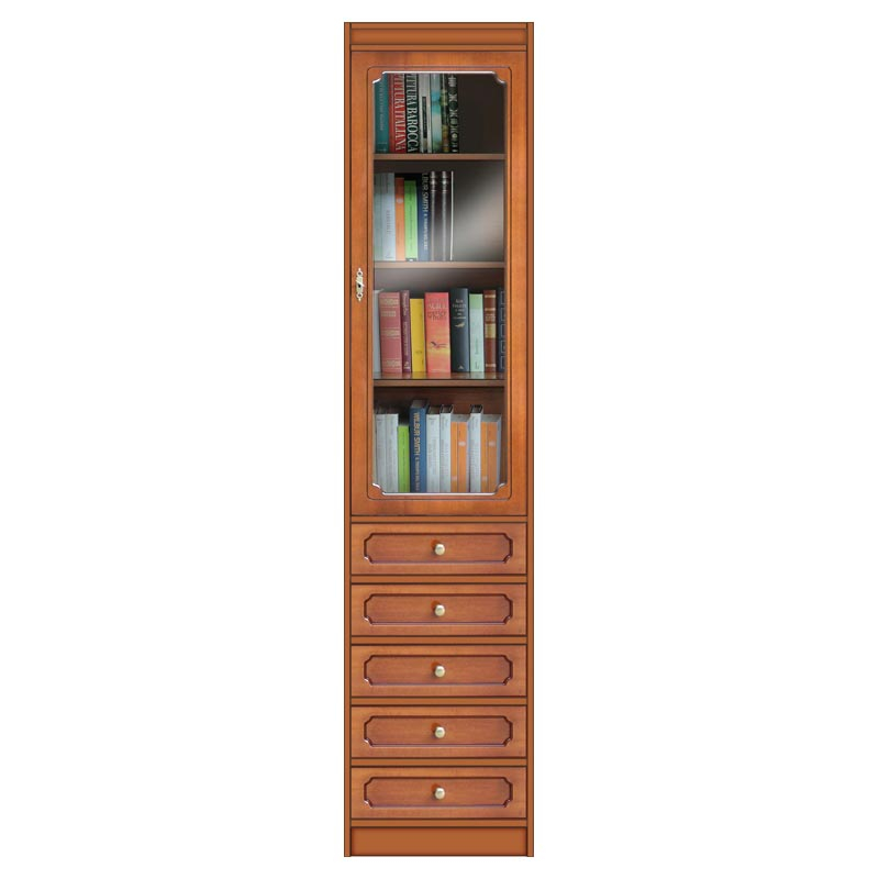 Bibliothèque modulaire vitrée 5 tiroirs, design épuré et lignes élancées.