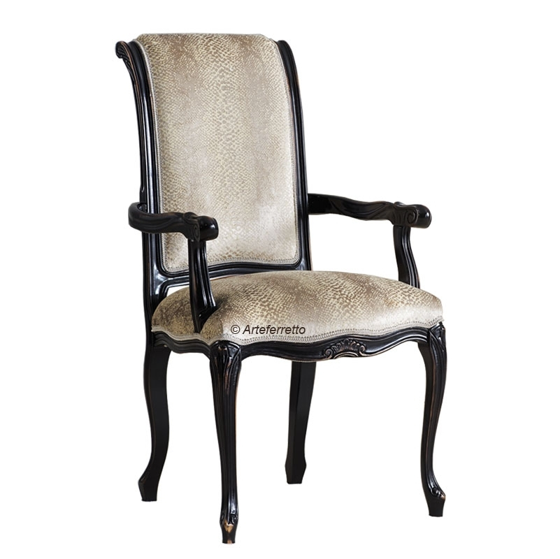 Raffinée chaise avec accoudoirs se caractérisant par un aspect esthétique élégant et riche en élaborés détails.