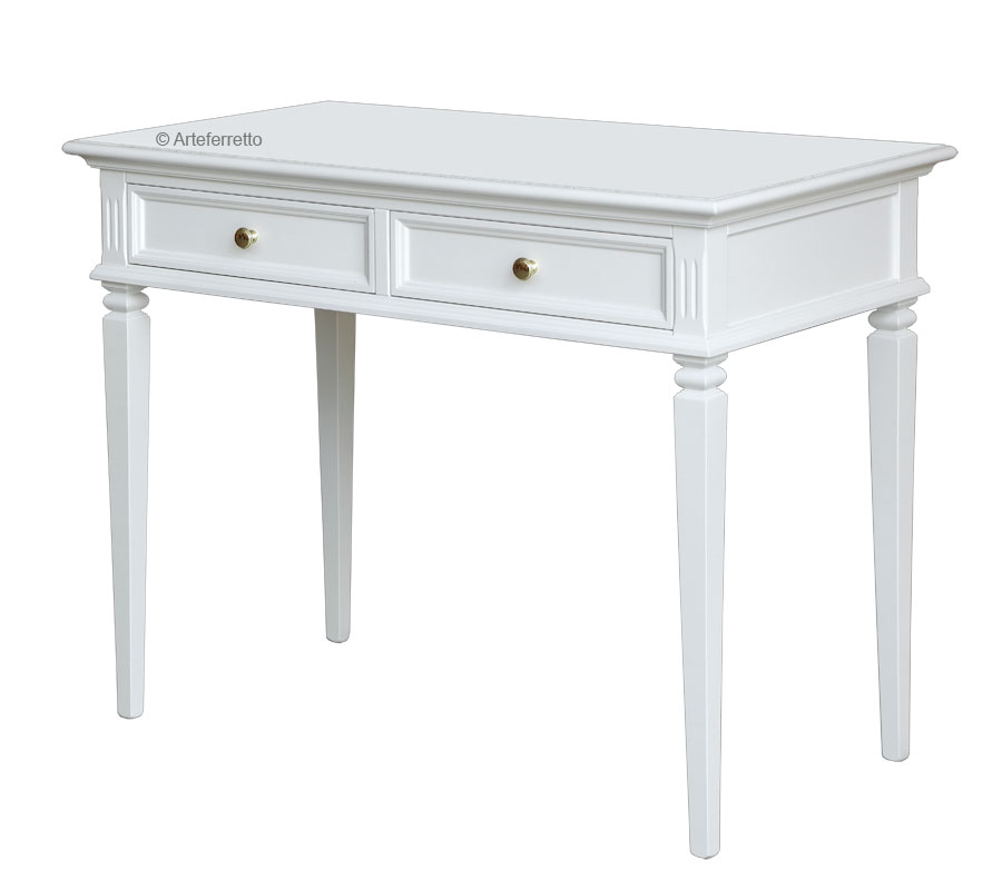 La structure est réalisée presque entièrement en bois massif de tulipier et dessous le plateau d'appui présente un confortable tiroir avec glissière à fermeture amortie.