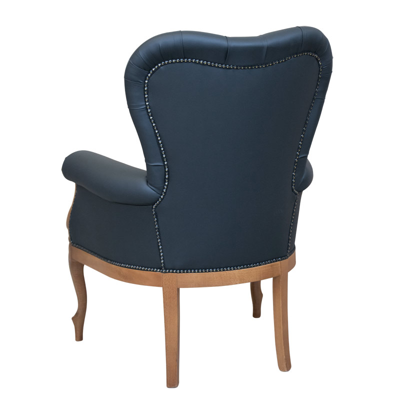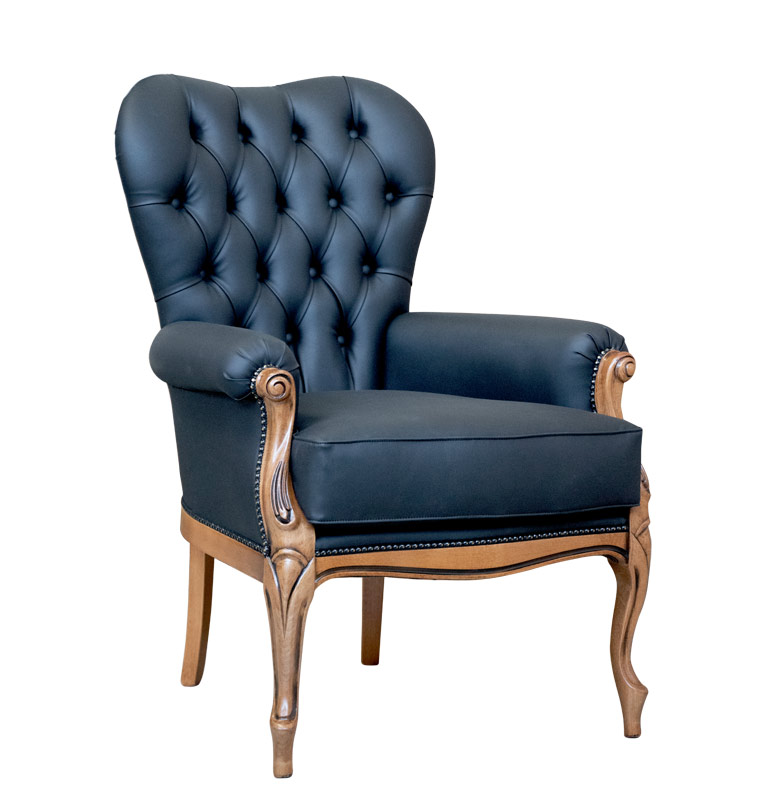 Fauteuil classique bois et vrai cuir capitonné
