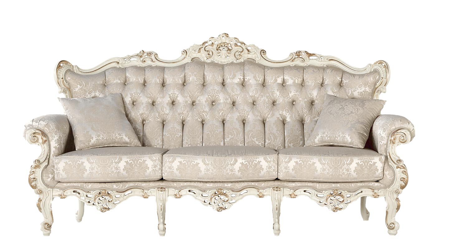 Canapé de style classique avec structure finement élaborée.