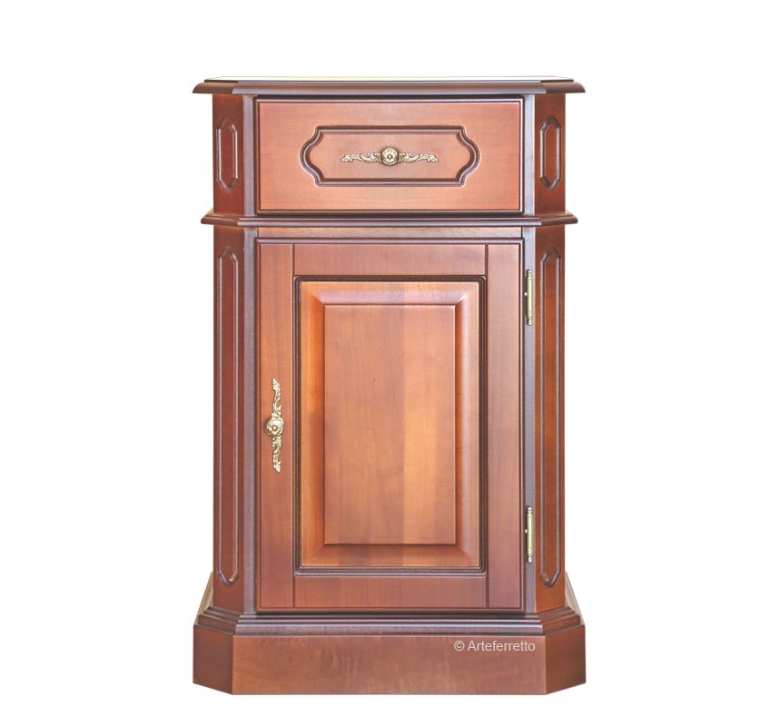 Le décor de sillons frontales et latérales, façonnées par les mains expertes de nos artisans vénitiens, crée un jeu de clair-foncé qui exalte au maximum la structure en bois massif du socle et de la porte.
