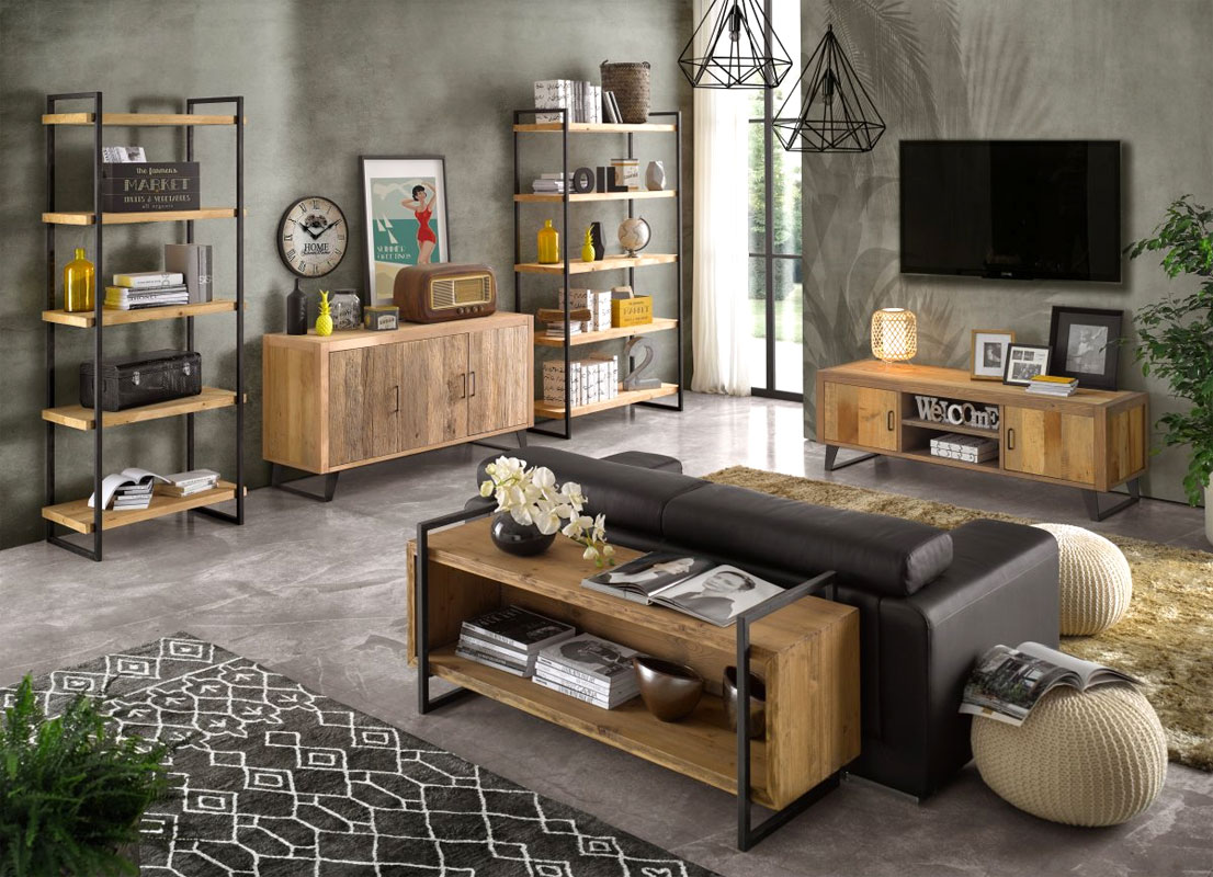Le buffet repose sur d'élégants et solides pieds en fer traité et offre à l'intérieur le confort des étagères en bois massif.