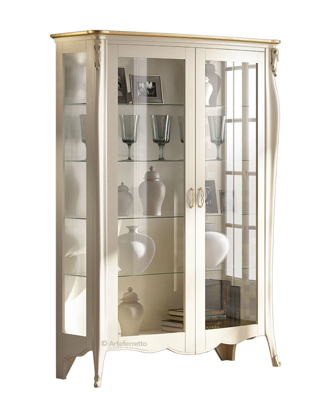 Disponible en plusieurs finitions, cette vitrine vous assure une structure solide, riche en éléments en bois massif savamment travaillés.