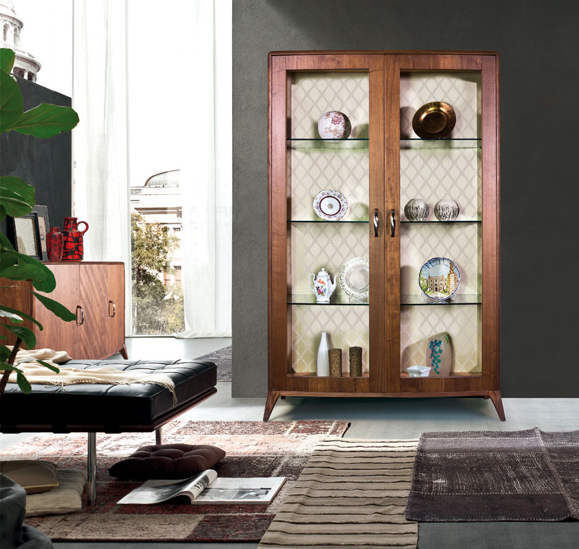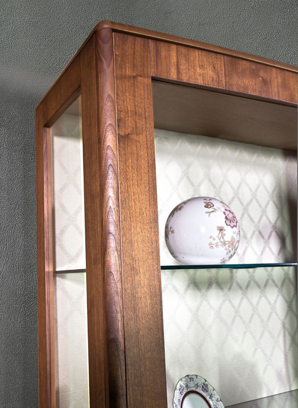 Elégante dans tous ses détails, grâce aussi à la beauté du noyer Canaletto, cette vitrine combine un style contemporain avec un raffinement classique qui suscite une émotion spéciale dans tout type d’ameublement.