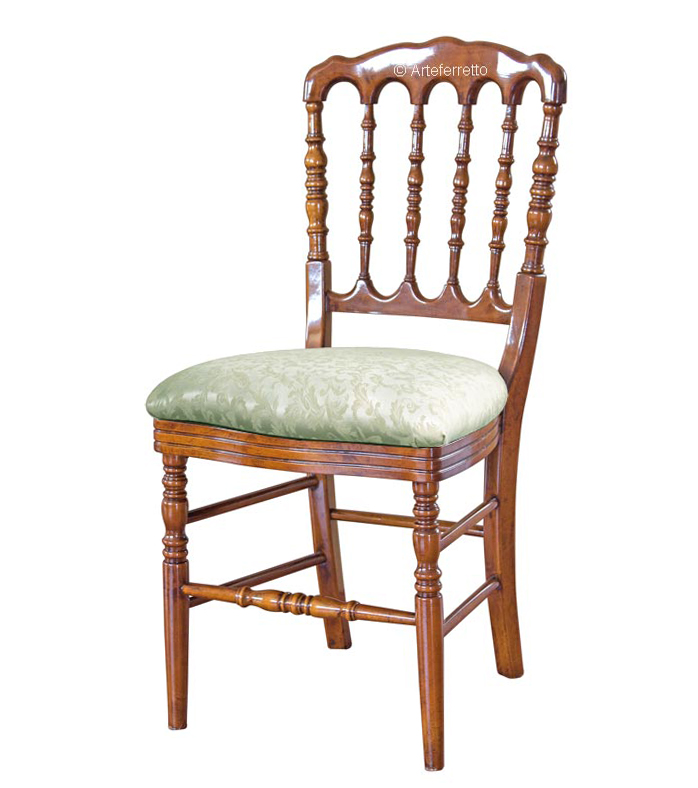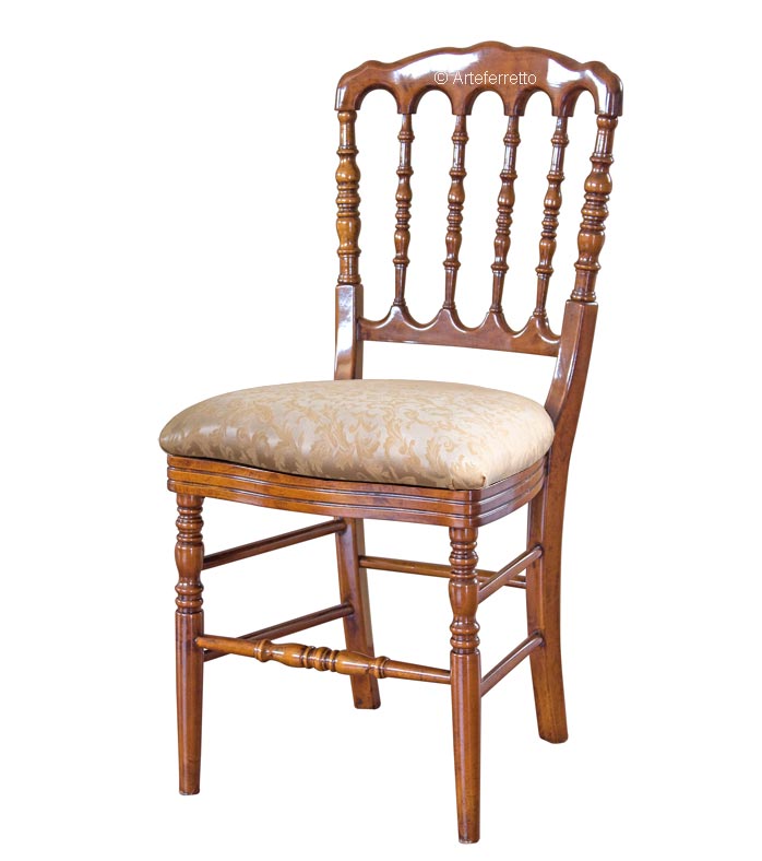 Dans la production de cette chaise, nous accordons une attention particulière au confort de l'assise, avec un rembourrage indéformable recouvert de tissus italiens des meilleurs tissages.