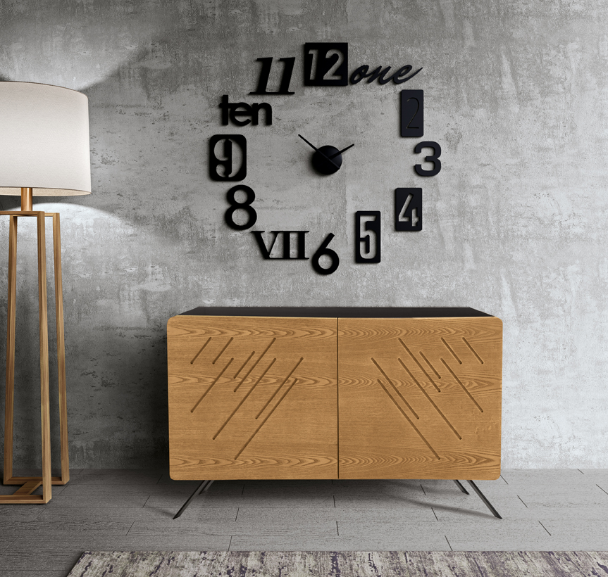 Buffet Astra 120 cm 2 portes bois de frêne avec gravures