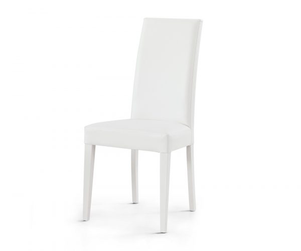 Lot de 4 chaises en similicuir blanc et structure en bois, également blanc.