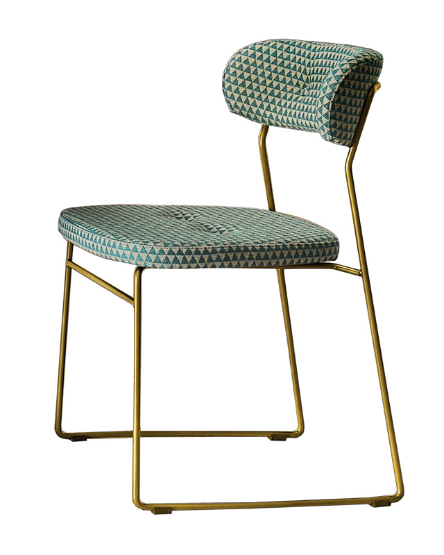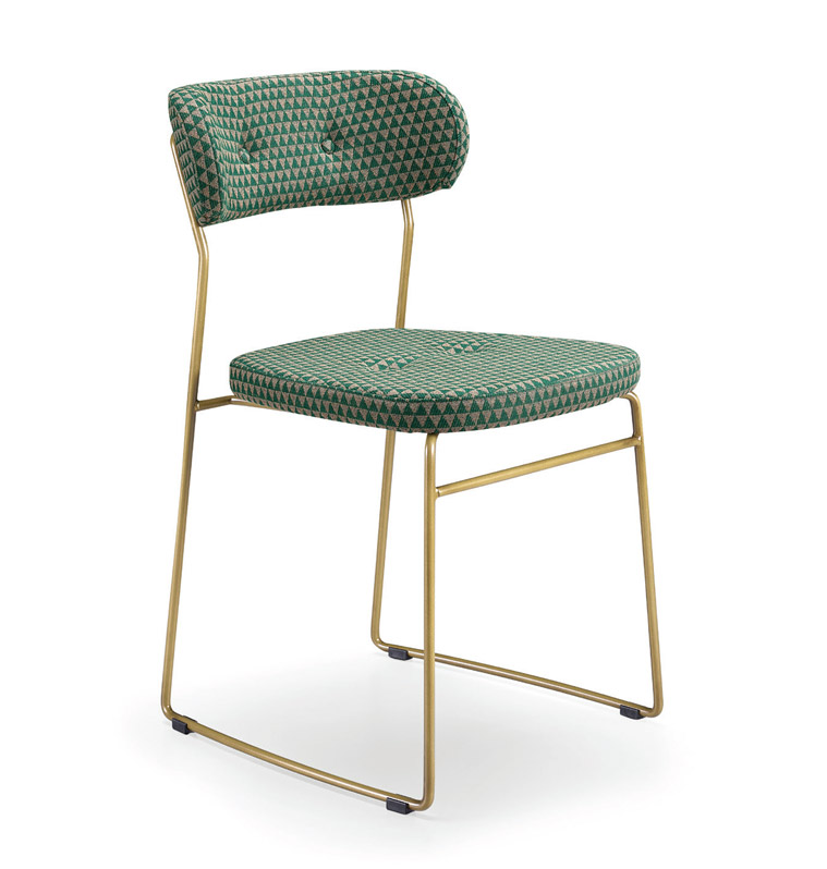 Dossier et assise rembourrés avec application de boutons.