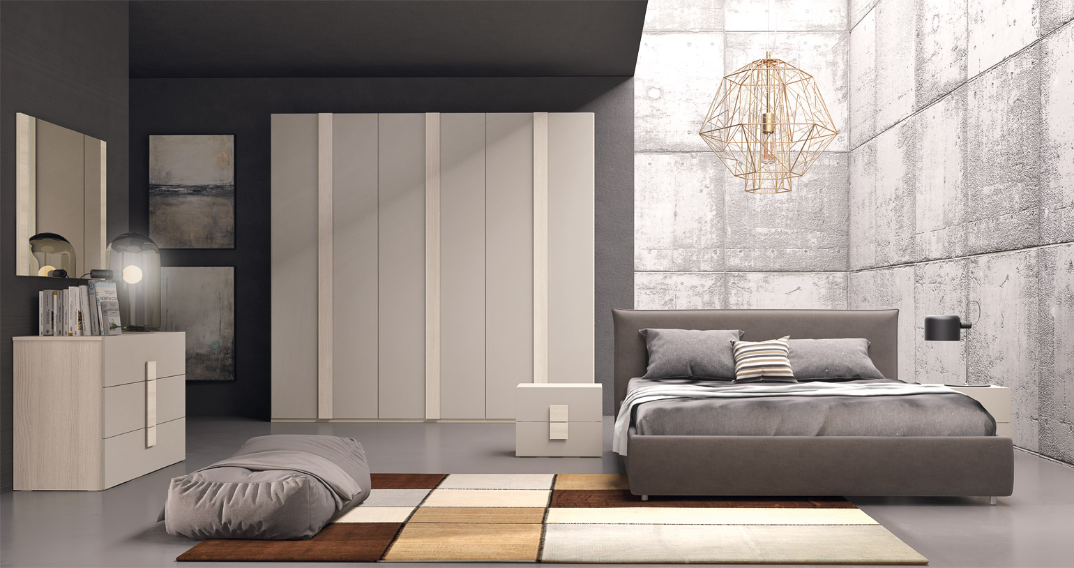 Chambre complète moderne au design épuré et minimaliste. Convient aux environnements plus contemporains.