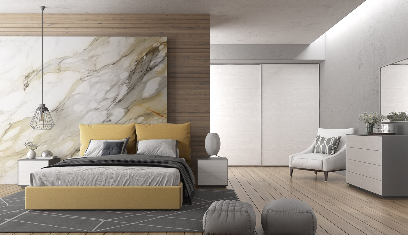 Chambre complète aux lignes simples et épurées. Convient aux environnements modernes/contemporains.
