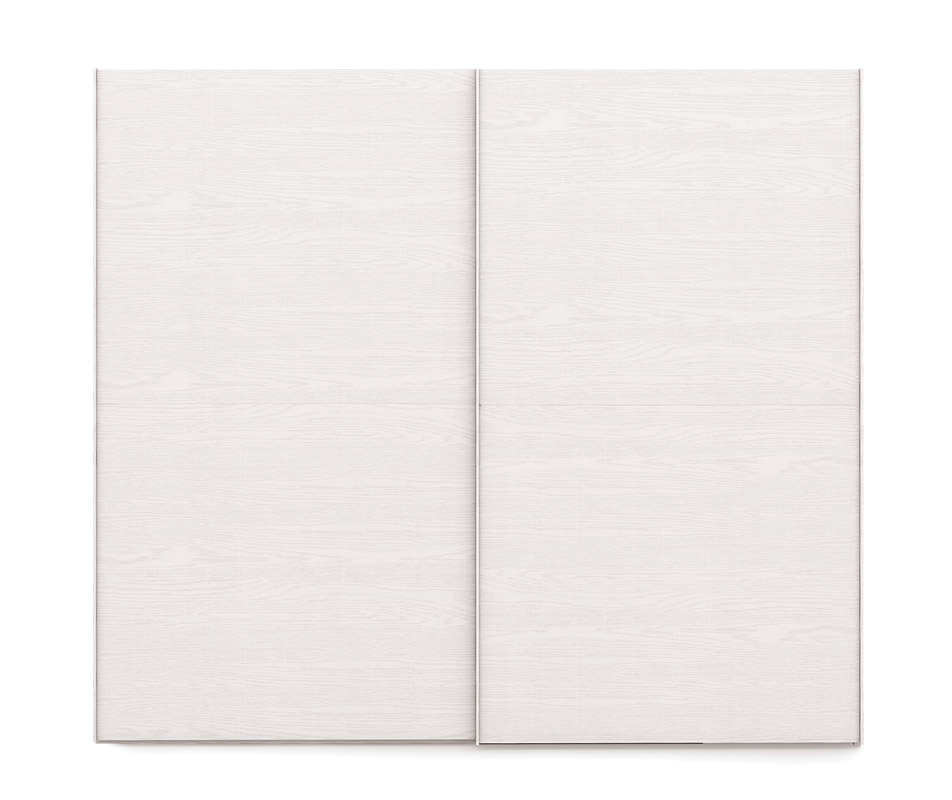 Composée d'une armoire avec 2 portes coulissantes, de 2 tables de chevet avec 2 tiroirs, d'une commode avec 4 tiroirs, d'un lit capitonné et d'un miroir. En bois de frêne, proposée en photo en finition frêne couleur craie et gris foncé.