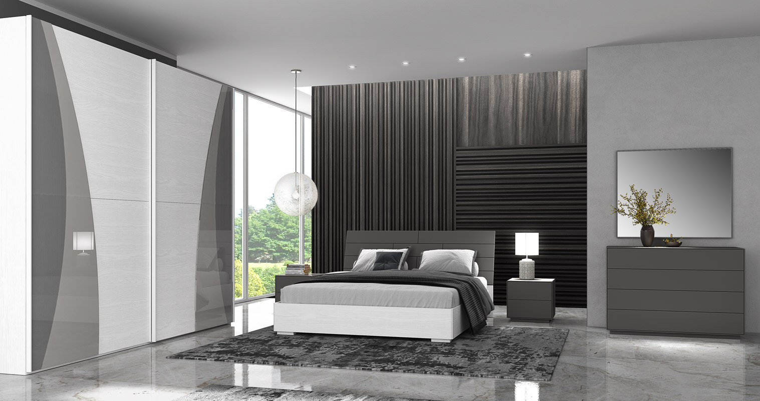Chambre complète de goût simple et moderne, adaptée pour les environnements plus contemporains et minimalistes.