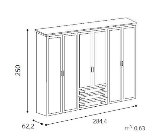 8 portes (dont 2 avec miroir à toute hauteur de l'armoire), avec fermeture ralentie,