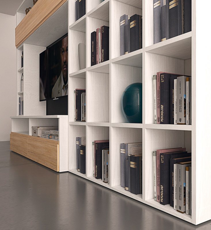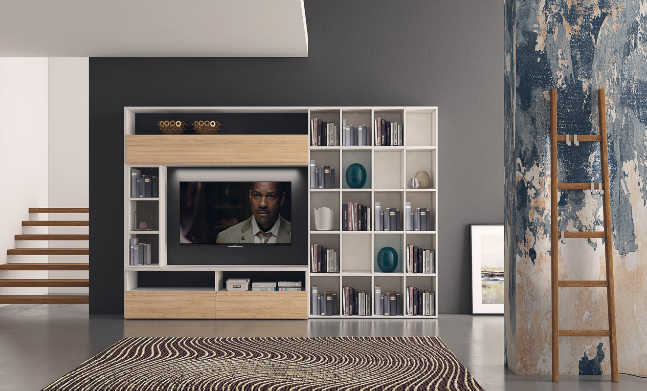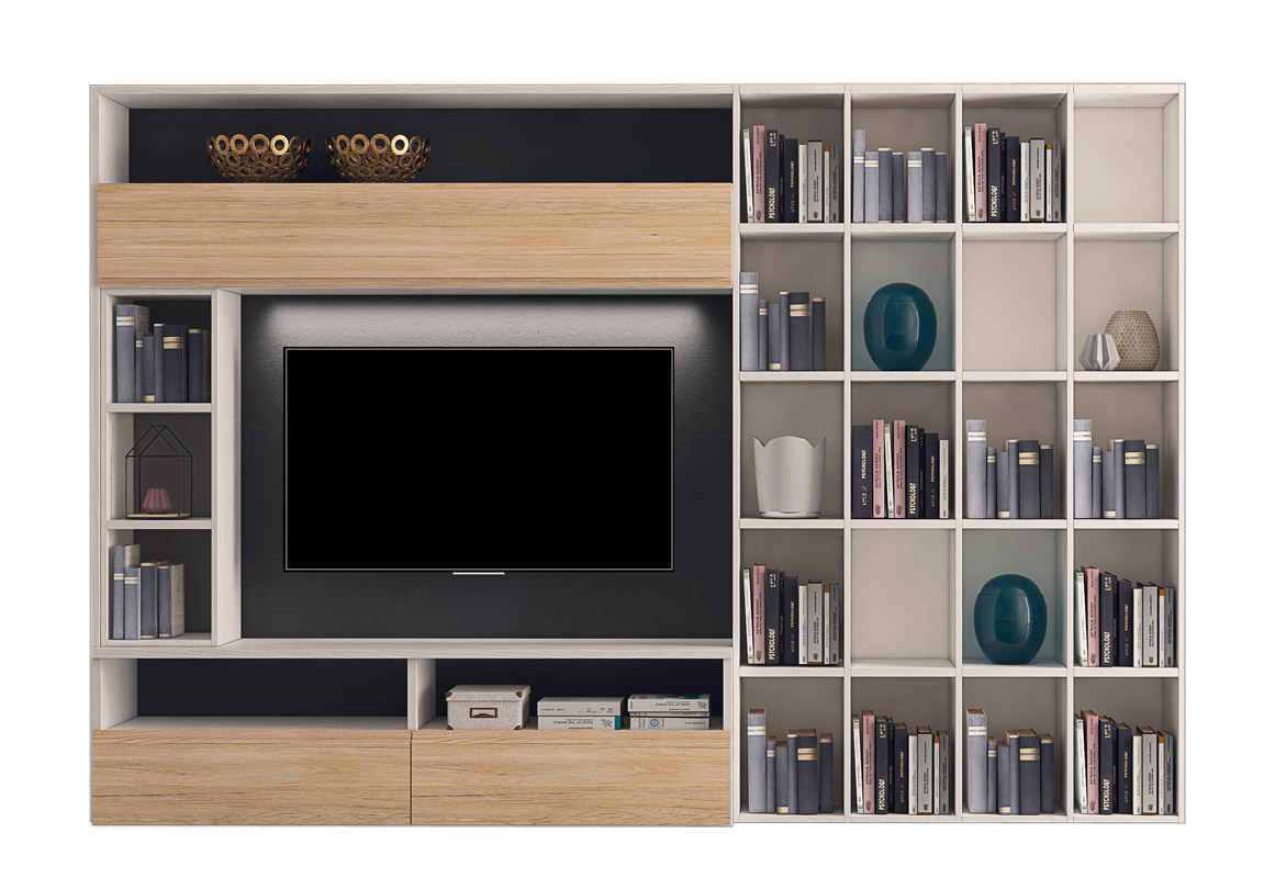 Paroi équipée de salon de style moderne et contemporain.