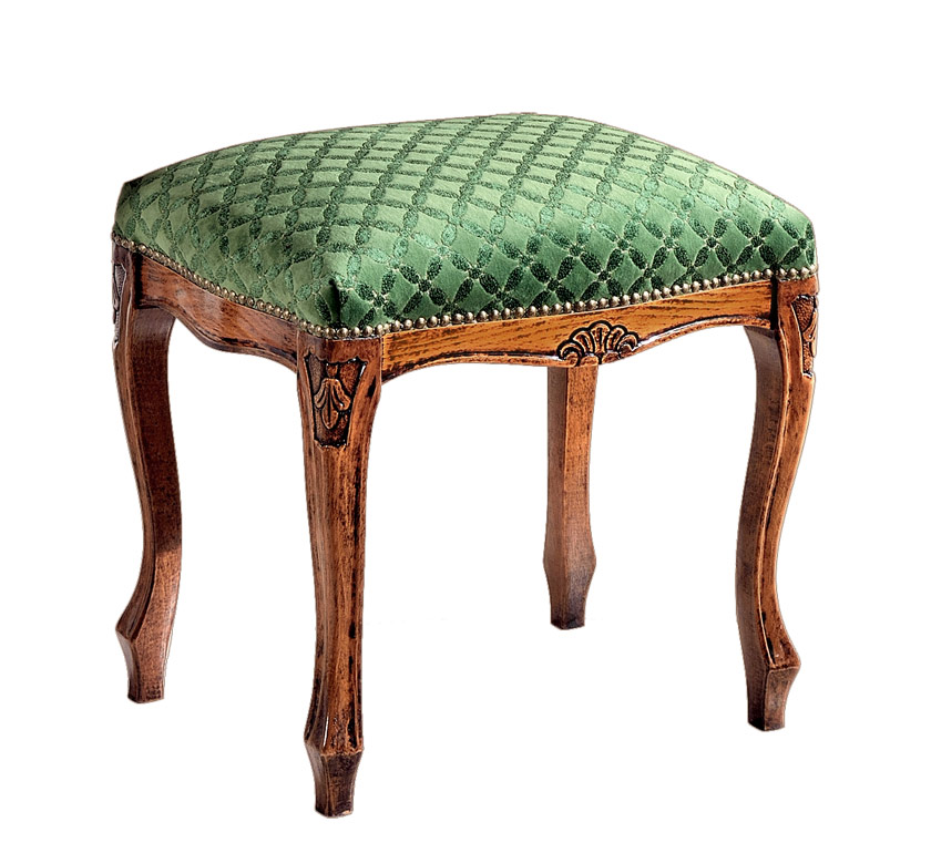 La version standard est sans tabouret, possibilité de l'ajouter avec le tissu comme sur la photo dans la version B avec supplément. D'autres tissus sont disponibles sur demande.
