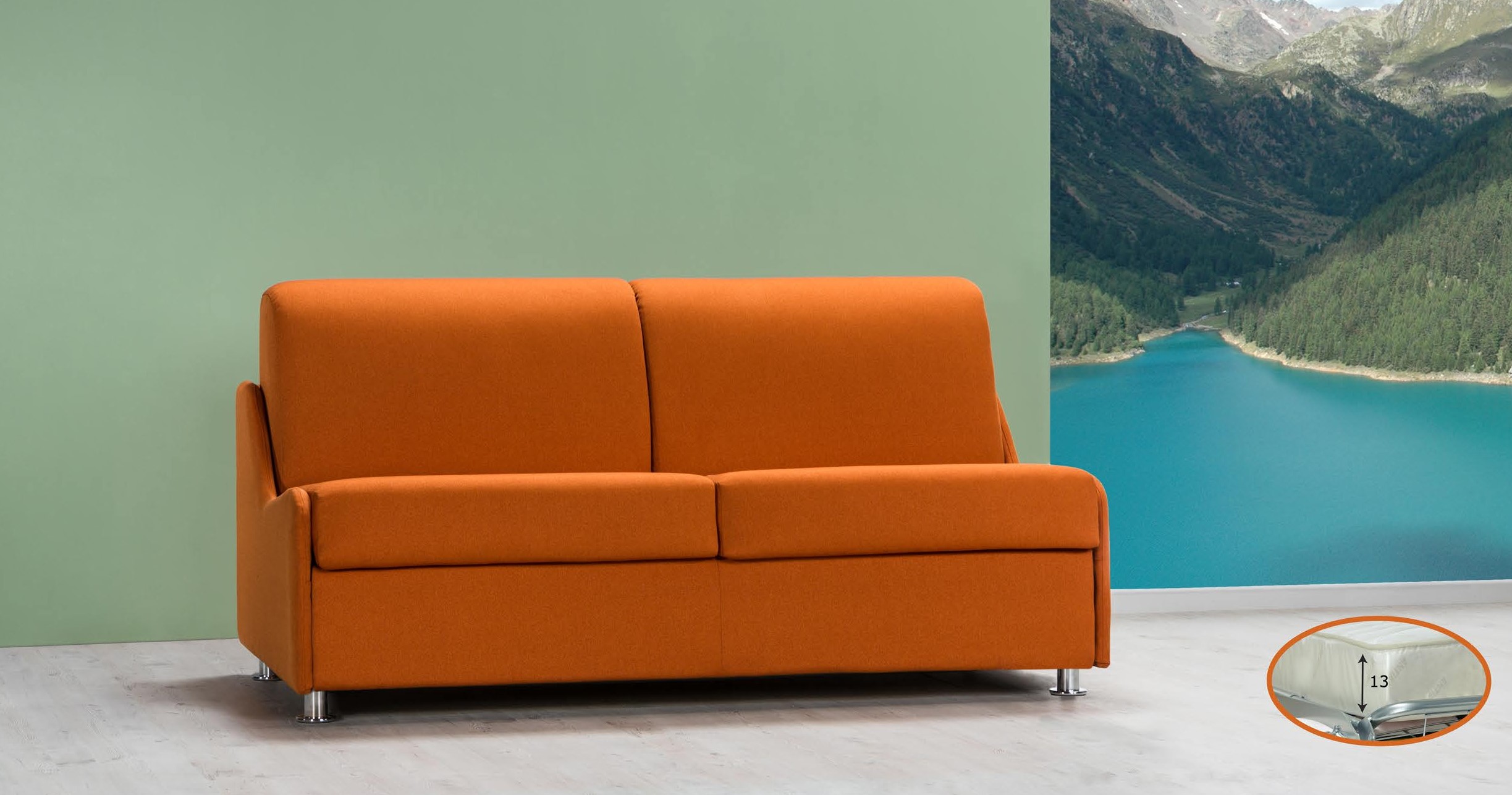 Canapé-lit orange polyvalent au design compact, parfait pour optimiser l'espace sans sacrifier le confort. Réalisé avec un cadre en bois, il est équipé d'une suspension interne avec des sangles élastiques à haute résistance et d'un rembourrage en mousse de polyuréthane à haute densité. Le sommier électrosoudé et le matelas en mousse (100x190 cm, hauteur 13 cm) assurent un repos confortable. Le creux de l'oreiller ajoute une touche de fonctionnalité.