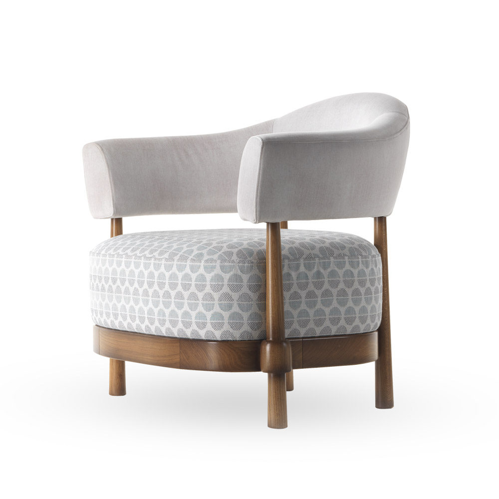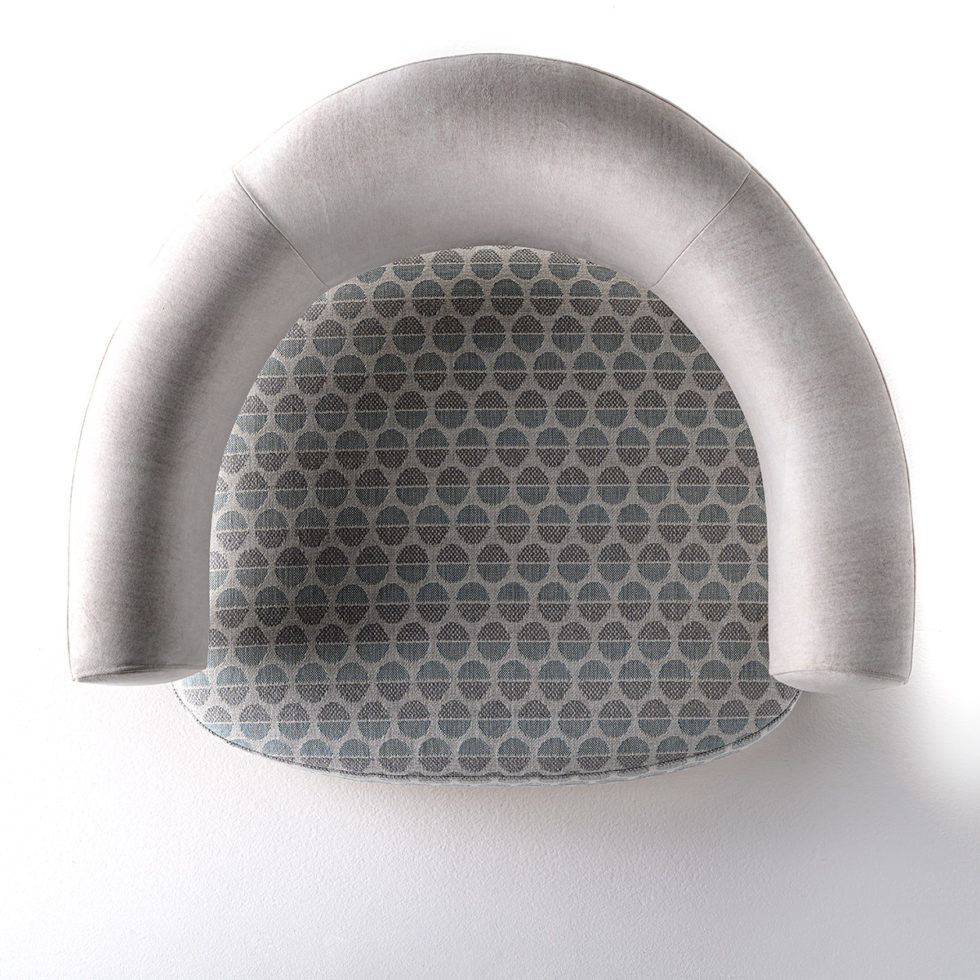 Un beau fauteuil à la ligne moderne et originale, caractérisé par le rembourrage du dossier qui rappelle l'image d'un coquillage.