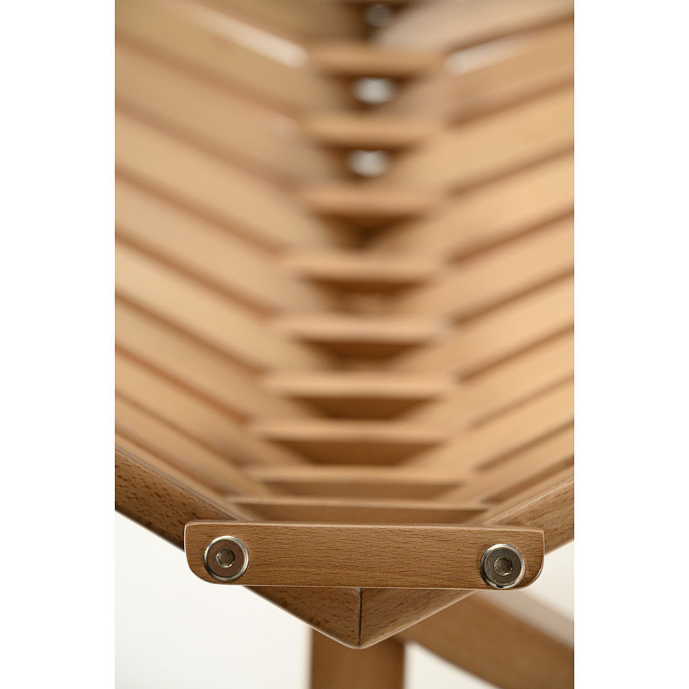 Ce fauteuil a une structure en bois de hêtre, enrichie de détails en contreplaqué. Il est conçu pour allier beauté et solidité.