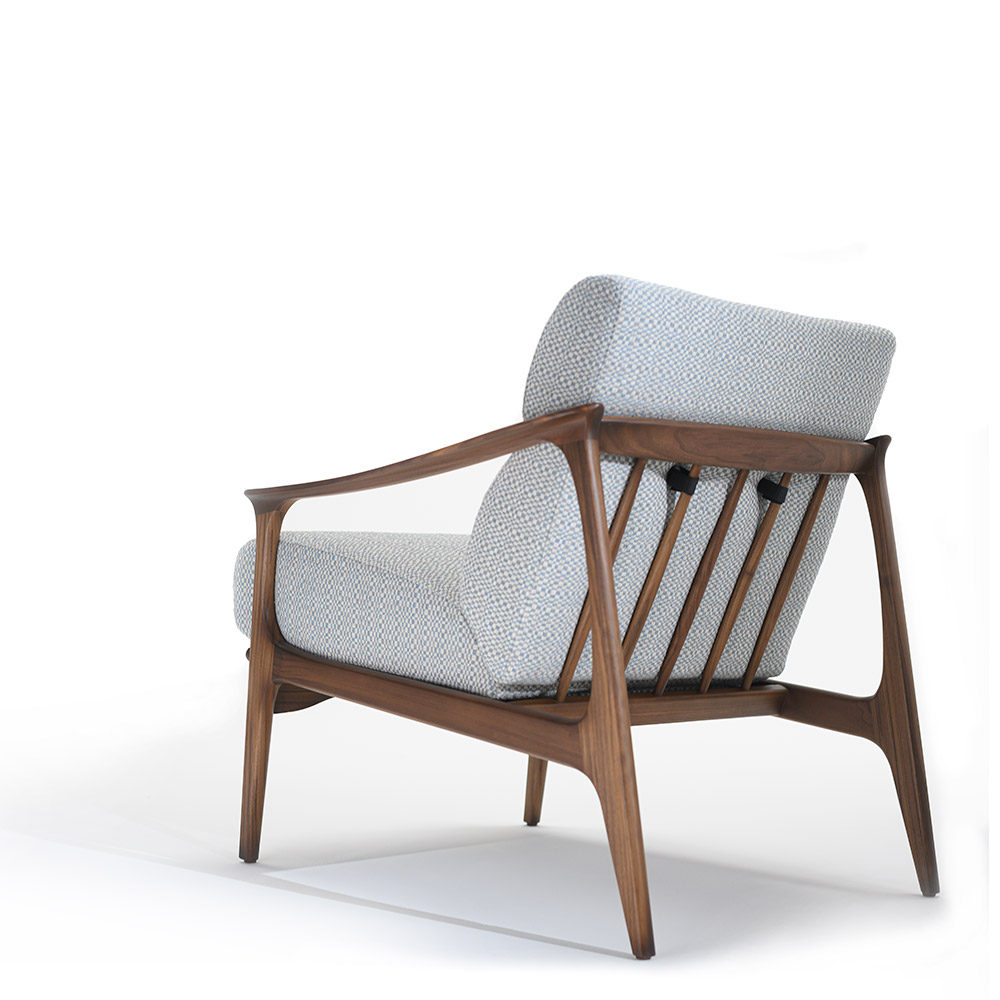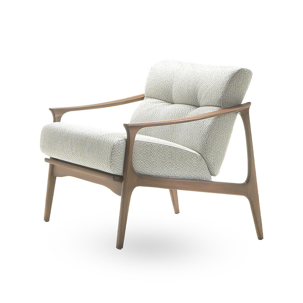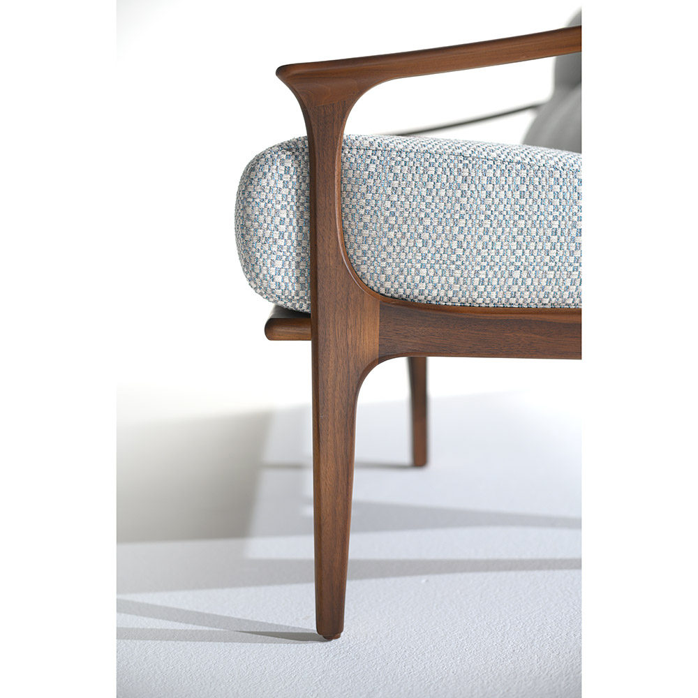 Ce fauteuil a une structure en bois de hêtre, enrichie de détails en contreplaqué. Il est conçu pour allier beauté et solidité.